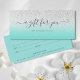 Einfache und elegante Drehbuch aquamarin blauen Glitzer ombre Farbe Block Geschenkgutschein. Dieses elegante Script-Geschenkzertifikat passt perfekt in einen Standard-Geschäftsbereich #10. Ideal für Ihre Marke und Ihr Geschäft.