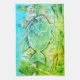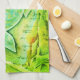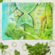 Geschirrtuch mit fantastischem grünen Fisch. Ein Fliegender Fisch über der Wüste enthält Tierleben. Ein Mutterfisch fliegt über die Wüste und trägt die Vielfalt des tierischen Lebens auf unserem Planeten Erde. Oktopus, Elefant, Schildkröte, Adler, Delphin, Giraffe und Eisbär fühlen sich beschützt und sind bereit, sich ein neues Zuhause zu suchen.