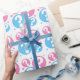 Geschlecht offenbart Baby Dusche Mädchen Fragezeichen Wrapping Paper Rollen. Niedliches blau-rosa Muster für Neugeborene. Fun-Design für junge Mutter, Freunde, Familie, Gäste etc. Maßgeschneiderte Geschenkpackung für sie. Weißer oder benutzerdefinierter Farbhintergrund.
