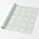 Das Geschlecht offenbart Party-Packpapier in blau, rosa, grün und gelb. Zeichnet mit einem weißen, blauen und rosa Fragezeichen.