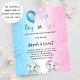 Für ein Geschlecht zeigen Babydusche. Ein blauer, weißer und rosa Farbverlauf. Glitzer und Blau, rosa und weiße Ballons und Staub aus Glitzer. Ein Babyelefant und ein gabeliger Elefant. Personalisieren und fügen Sie die Namen der Eltern zu sein und Party-Details. Der Name und der Text: Junge oder Mädchen werden mit einem handgeschriebenen Stift geschrieben. 1 Blatt = 1 Einladung mit Druckkante bis Kante.