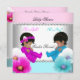 Gender Reveal Paare Kinderdusche, Afroamerikanisch oder Twin Baby Dusche Niedlich Girl and Boy, Rosa Aquamarin Blue Blumen, Blumen, Blumen. Kleine Prinzessin oder Kleiner Prinz "es ist ein Mädchen" Party Einladung "es ist ein Junge". Elegante Events für Frauen, Party Einladungen für alle Altersgruppen, einfach anpassen.