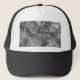 LKW-Hut mit coolem "flüssigem Metall-Look" abstraktes Design, wirbelnde, blubende Formen in Silbergrau. Kann als Hintergrund für Ihren eigenen Text, Bilder und Ideen verwendet werden. Bitte beachten Sie, dass es sich um ein gedrucktes digitales Kunstbild handelt, das nicht glänzt oder echtes Metall enthält.