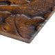 Hand geschnitztes Holz mit orientalischem schauendem Bild. Nahes hohes Detail des geschnitzten Kastens. Fotografie.