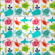 Niedlich, Spaß, bunter, großer für Kinder oder jedermann, denen Liebeseegeschöpfe, dieses Gewebe einen weißen Hintergrund und Lose Geschöpfe vom Meer einschließlich Seeschildkröten der rosa, grünen und blauen, Blauwale mit Wassertüllen, Krabben von Rotem und von Gelbem hat und Seepferde im Regenbogen färbt!