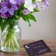 Geschrieben in den Sternen Brautparty. Silbermond und Sterne vor dunkler Mitternacht lila Hintergrund