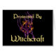 Dieser Pentagramentwurf mit Blitz und Feuerbolzen und -text, der sagt: "Geschützt durch Hexerei" sagt denen, die Ihnen Schaden wünschen, den, sie sich zurückziehen sollten.