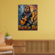 Dieses fesselnde Kunstwerk zeigt einen Löwen, der mühelos in Sonnenbrillen und einer Lederjacke cool aussieht und meisterhaft eine Gitarre schlüpft, während er auf den verdrillten Zweigen eines nackten Baumes sitzt. Ein strukturierter, launischer Himmel bietet den Hintergrund. Das dicke, ausdrucksstarke Impasto schafft eine greifbare Textur, wodurch die "Rock or Die"-Deklaration mit der Rohenergie der Performance in einer krassen Umgebung resoniert.