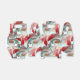 Geschwungene, kreisförmige Stücke in schimmerndem Rot zu Korallen und Lachs mit silbergrünen Teilen.