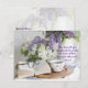 Eine Vase aus Lilie, Brille, Buch und eine Tasse Tee, ein beruhigendes Bild mit Worten aus der Bibel: "Der Herr wird seinem Volk Kraft geben; der Herr wird sein Volk mit Frieden segnen" Anpassen Sie die Karte mit dem Text Ihrer Wahl, und es ist leicht, das Bild zu ändern, wenn Sie wollen.