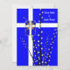 Mit dem weißen Kreuz und den weichen Federnfässern kontrastiert die kräftige königsblaue Kontraste wunderschön. Alles ist mit einem keltischen Kreuz aus Buntglas geschmückt.