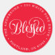 Dress up your holiday uvers with our Segen Script holiday Rücksendeadressen-Aufklebers. Die festlichen Aufkleber enthalten das Wort Gesegnet in einer weißen Kreide, handgeschriebene Schrift mit Ihrem Namen und Ihrer Adresse, die den Aufkleber vor einem hellroten Hintergrund umkreist.