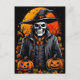 Entfesseln Sie Halloween mit dieser faszinierenden Postkarte! Ein besinnliches Skelett erfreut sich an den spöttischen Festlichkeiten. In seinem unheimlichen Charme ist es die perfekte Verkörperung des verspielten Lichts des Urlaubs. Teilen Sie den Nervenkitzel von Halloween mit dieser unentbehrlichen Postkarte.