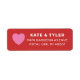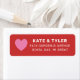 Einfach stilvolle Hochzeitstühle mit rotem Hintergrund, personalisierter, individueller weißer Rücksendeadressen-Aufkleber mit rosa Herzform. Die Farben und Schriftart können völlig personalisiert sein.