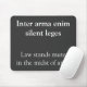 Ein dunkelgrauer Mousemat mit lateinischem Zitat und der englischen Übersetzung darunter. "Das Gesetz steht stumm inmitten der Arme" ist ein Zitat des römischen Anwalts Cicero. Es bedeutet im Grunde, dass, wenn es um einen Krieg geht, rechtliche Angelegenheiten und die Rechtmäßigkeit bestimmter Handlungen einen Rücksitz haben.
