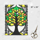 Dieser Glasbaum ist ein vom Deko inspiriert Kunstwerk mit geometrischen Linien, die ein symmetrisches Muster erzeugen. Dieser Glasbaum, der mit modernster Technologie ausgeliefert wurde, ist ein auffallendes und auffälliges Design. Das zentrale Element des Designs ist ein stilisierter Baum, der in einem Buntglasstil dargestellt wird. Der Hintergrund des Musters besteht aus einer Reihe symmetrischer Formen. Die Verwendung geometrischer Formen und sich wiederholender Muster ist ein Kennzeichen des Art Deko Stils und verleiht dem Design ein Gefühl von Ordnung und Ausgewogenheit. Die Farben sind hell und lebendig, wobei die Palette von Gelb und Grün dominiert wird. Diese Farben verleihen dem Design ein Gefühl von Leben und Energie und ergänzen den farbigen Glaseffekt des Baumes.
