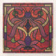 Ein leuchtendes Buntglasmuster im Vintagen Stil. Die uralte Kunst des Bleiglas und Buntglaskunst wird hier vor einem strukturierten Hintergrund neu erschaffen. Das Licht, das durch eine durchsichtige Glasscheibe strahlt, verleiht dem Ganzen ein Gefühl von Ruhe und Ruhe.