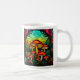 Tasse mit einem Buntglasgemälde von roten Pilzen in einem mystischen Wald