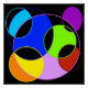 Farbiges und geometrisches Design, Kreise mit Regenbogenfarben auf schwarzem Hintergrund