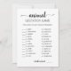 Achetez ce jeu et profitez de la carte de jeu Animal Gestation de haute qualité pour votre événement! Combien de temps chaque animal est-il enceinte ? Activités baby showers ! Design noir et blanc. RÉPONSES : Cerf - D, Kangourou - K, Lapin - J, Ours - A, Camel - L, Fox - E, Puma - I, Dauphin - C, Lama - H, Chèvre - G, Éléphant - F, Chat - B