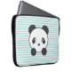 Eine blaue und weiße gestreifte Laptophülse mit einem niedlichen Panda.