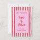 Verspielt, modern und voller Persönlichkeit gibt diese Save-the-Date-Karte den Ton für eine Feier vor, die sich nicht an die Regeln hält. Handgemalte rote Streifen umrahmen ein weiches rosa Zentrum und erzeugen einen auffallenden Kontrast, der sich sowohl romantisch als auch lustig anfühlt, während die Buchstaben im Pinselstil einen mühelosen, künstlerischen Touch hinzufügen. Es ist die perfekte Art, Ihren Termin mit Selbstvertrauen und Farbe anzukündigen und die Gäste wissen zu lassen, dass dies eine Hochzeit ist, die sie nicht verpassen wollen.