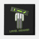 Eine monochrome Darstellung eines Bauarbeiters, der Jeans und eine Weste trägt, mit einem Kopf, der nach rechts geneigt ist. Die Worte "Level Headed" sind unten und neigen sich auf die verlassen. Alle Elemente sind von grünen Konturen umgeben und auf schwarzem Hintergrund gehalten.