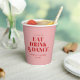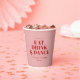 GET READY TO EAT DRINK AND DANCE! Modern soft blush, red bold font, wedding custom paper cups with your names and date.
