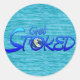 Stoked ist ein Surfer-Begriff, der bedeutet, glücklich oder aufgeregt zu sein. Holen Sie sich Stoked Formulierung mit einem Surfer reiten eine Welle in der O.