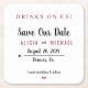 Einfache rustikale lässige Drinks auf uns! Typografie-Skript, Name, Datum und Ort personalisierte Hochzeit speichern das Datum Untersetzer mit dunkelroten Bordeaux Akzenten.