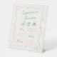 Getränke mit weißer Hand, rosa und grüne Unterschr Sockelschild