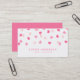 Diese süße Visitenkarte bietet verstreute Herzen Konfetti in verschiedenen Rosa-Tönen vor einem weißen Hintergrund auf der Vorderseite und rosa Hintergrund auf der Rückseite. Diese moderne, trendige Visitenkarte ist ideal für Party-Planer, Veranstaltungsplaner, Bäcker, etc. Personalisieren Sie diese, indem Sie den Platzhalter-Text durch Ihre eigenen Informationen ersetzen. Für weitere Optionen, wie zum Beispiel den Schriftart zu ändern und ihn zu vergrößern oder zu verändern, klicken Sie auf den Button "Anpassen". *Bitte beachten Sie, dass das Zazzle-Wasserzeichen, das in der Zoomvorschau angezeigt wird, NICHT auf dem gedruckten Endprodukt erscheint. © Rosewood and Citrus