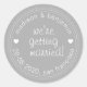 Schick und einfach, Save the Date, mit Ihren Namen und Hochzeitsdatum in weißer, moderner Typografie auf einem Betongrauen Hintergrund, und der Text "wir heiraten" in stilvollem Skript-Schriftart. Verwenden Sie diese Hochzeitsaufkleber für Ihre Hochzeitsgeschenke, Geschenktaschen oder als Save the Date Umschlag Aufkleber. Exklusiv für Sie entworfen von Happy Dolphin Studio. Wenn Sie Hilfe oder passende Produkte benötigen, kontaktieren Sie uns bitte unter happydolphinstudio@outlook.com.