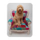 Ein fröhliches Goldendoodle sitzend behutsam auf einem farbenfrohen, gemusterten Stuhl. Dieser niedliche, verschleierte Welpe scheint größer als der Stuhl zu sein, aber nie zu groß, um in den Armen zu bleiben. Mit seiner Zunge, die sich gegenüber der Kamera in diesem Foto hält, würde er den perfekten Begleiter schaffen. Entdecken Sie viele niedliche Welpen hier auf Zazzle mit Getty Images.