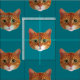 Aquamarines Gewebe mit Ingwerkatzendruck.