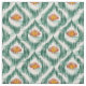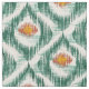 Stoff mit Vintagem grünem Kat-Muster. Stoffe mit Muster im Boho-Stil. Abstrakte Pfauenfedern Muster in Boho Soho.