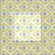 Stoff mit Vintagem grünem Katzenmuster. Stoff mit Muster im Boho Stil. Abstraktes Pfauenaugenmuster