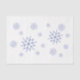 Schneeflocken in verschiedenen Größen in blau auf weißem Hintergrund.
