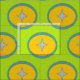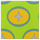 Der grüne Sternkreismuster Stoff mit Stern in orangefarbenem und blauem Kreis ist bereit, Teil Ihres nächsten Nähprojekts zu werden.
