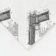 Ein Vintages Bild eines Gewehrdiagramms für eine halbautomatische Pistole mit 45 Kalibern.