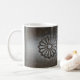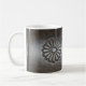 Eine Tasse mit einem Bild eines Gewehrspitzenempfängers Arisaka Modells 99 mit seinen Stichen der Kaiserchrysantheme und Modellnummer (geschrieben auf japanisch). Dieses war ein Weltkrieginfanteriegewehr, das von der japanischen Kaiserarmee benutzt wurde. Nachdem Japan übergab, wurde der Chrysanthemestich weg der meisten diese Gewehre gerieben.