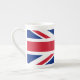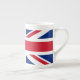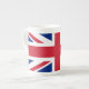 Die britische Flagge traf auf eine Knochen-China-Tasse zu. Set umfaßt Tassen in einigen Größen (einschließlich Knochen-China und Espressoschalen), im Süßigkeitsglas, in den Krügen und im Teetopf in zwei Größen.