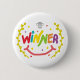Ein lustiges Gewinner-Design zeigt das Wort in farbenfroher Schrift mit einem Trophäe über, Lorbeer verlasse zu beiden Seiten, ein großes Lächeln und Sterne. Für Gewinner, die groß gewinnen!