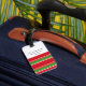 Gewohnheit, rotes u. grünes gestreiftes Muster u. Gepäckanhänger
