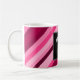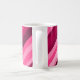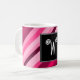 Dieses TassenAusrüstungsbeschreibungen ein gestreiftes Muster, das verschiedene Schatten von Farben kennzeichnet, mögen Rosa und Magenta. Es kennzeichnet auch einen personalisierter Vorname- oder letzter Namenanfangsbuchstaben in einem interessanten Schriftart innerhalb eines dunklen quadratischen Bereichs. Es könnte als kundengebundenes Geschenk gegeben werden jemand, das einen Vornamen oder Nachname hat, die mit dem Anfangsbuchstaben beginnt.