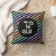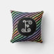 Dieses KissenAusrüstungsbeschreibungen ein Muster der Linien (oder der Streifen) färbten verschiedene Pastellfarben, mit schwarzen Linien zwischen ihnen. Es kennzeichnet auch einen kundengebundener Vorname- oder letzter Namenanfangsbuchstaben in einem interessanten Schriftart innerhalb eines dunklen Kreises. Es könnte als kundengebundenes Geschenk gegeben werden jemand, das einen Vornamen oder Nachname hat, die mit dem Anfangsbuchstaben beginnt.