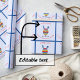 Dieses spaßige Osterpackpapier ist vollständig anpassbar, einfach in die Kästchen eingeben, um den Gruß und den Namen oder anderen Text zu ändern. Die Standardeinstellung in rotem Skript ist "GLÜCKLICH EASTER" und "Liebe von Oma" . Der Hintergrund ist blau, und der hellbraune Ostereig hat Streifen und Muster in Rot-Blau und Gelb.