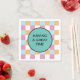 Cooles, blaues, orangefarbenes und rosa Schachbrettmuster und eine Textvorlage. Klicken Sie zum Bearbeiten auf Personalisieren und ändern Sie die Wörter.