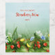 Diese speziellen Erdbeeretiketten sind mit winzigen, reifen, roten, wilden Erdbeeren in wilden Erdbeeren-Pflanze mit winzigen, gelben Butterbeeren, blauen Vergessenmernüssen und einem Single, der zwischen den Erdbeeren-Blätter auf einem von Grün bis Himmelblau gestuften Wasserfarbenhintergrund herguckt - von katz_d_zynes