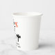 Halloween-Papiertassen für ein kinderfreundliches Halloween-Party mit Trick oder Treat oben geschrieben, mit Fledermäusen, Kürbis und Gespenst dekoriert.